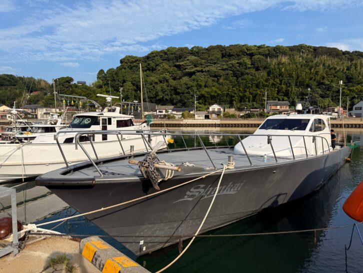 田代誠一郎船長が営み操船するサンライズ新海。佐賀県呼子から出船する人気遊漁船。速く、高性能機器を搭載したこの船で、大型ヒラマサはもちろん、シーズンによりクロマグロを追い求める。田代さんとのクロマグロとの出会いは、遊漁船の創業前のことになる。