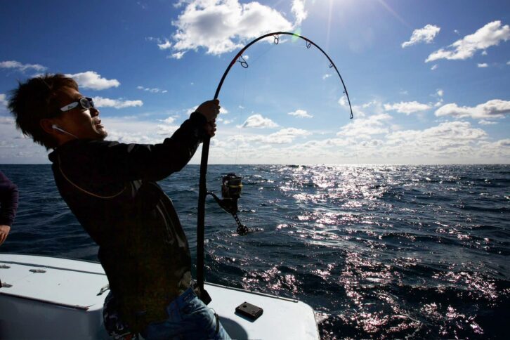 キャストしたルアーに、巨大なクロマグロが飛沫を上げてドカンと出る。いざ自身のルアーにヒットすると、慌ててしまうかもしれない。しかし、冷静に対処することが大切だ。