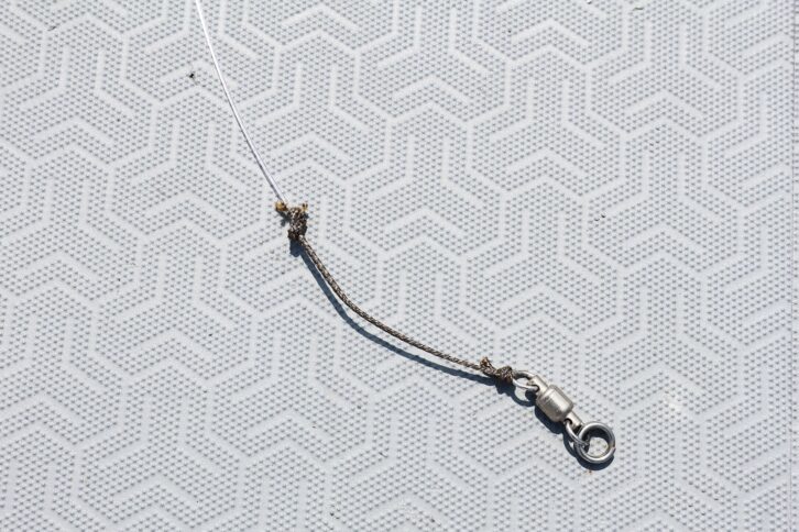 ザイロンノットの先端をスイベルに通し、使用する長さで折り返す。