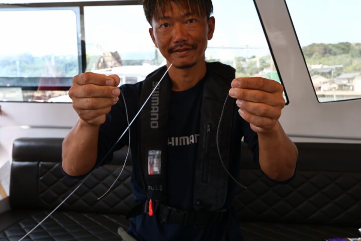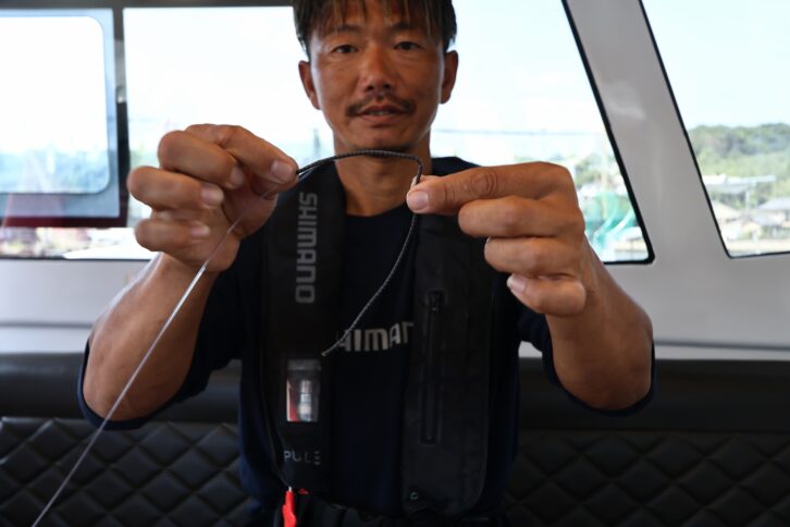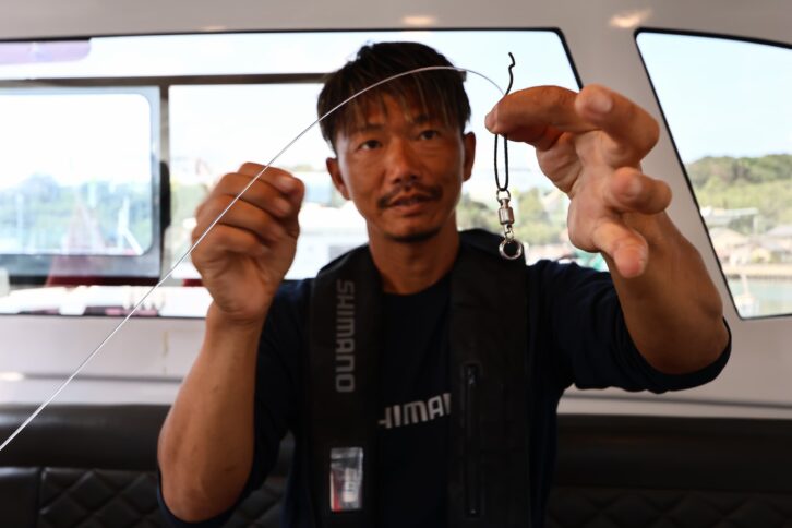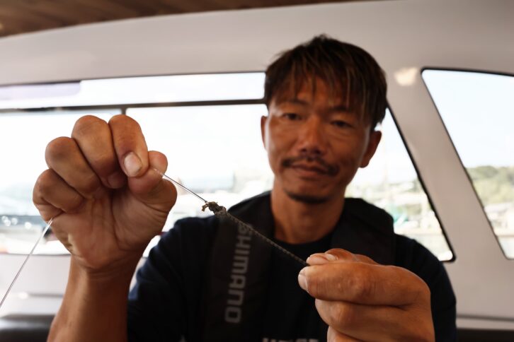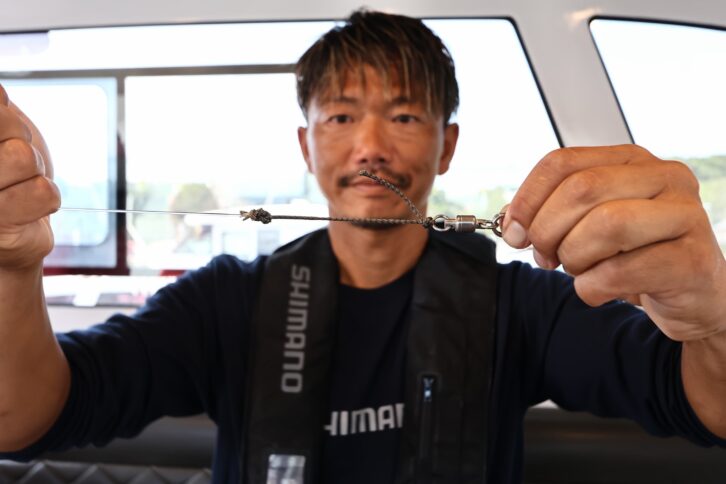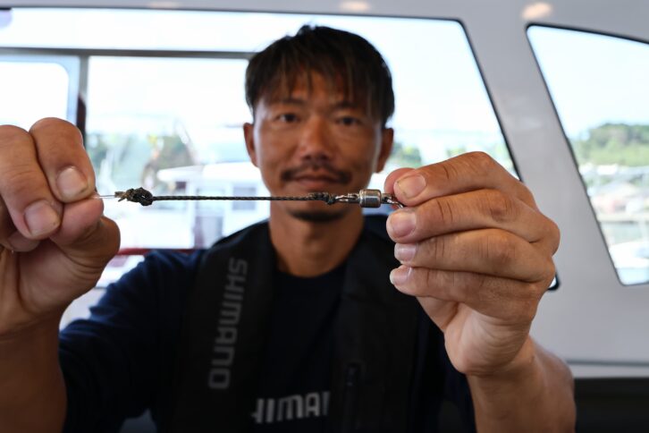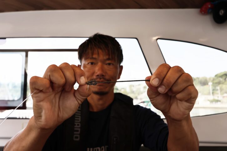 「イワシを捕食している時は、丸呑みする傾向が強いのでマグロの歯によるリーダーブレイク対策としてザイロンを結束します。ただ、喰いが渋くイワシを丸呑みしないような状況では、ザイロンを外したほうがヒット率は高いと感じています」