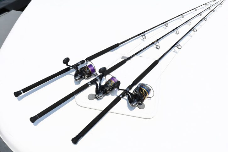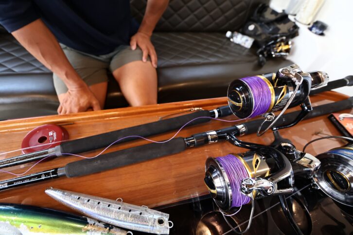 マグロゲームは、どのくらいのサイズのマグロがいるのか、どのような状況なのかは、マグロ回遊エリアに行ってみなければわからない。そのためにも数タックルの準備は必要。どのタックルも、いつでも投げられるように準備しておく。もしもタックルを厳選するなら、船長から事前にしっかりと情報を得て対応したい。
