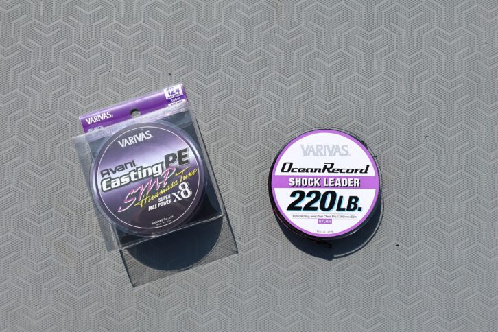 またリーダーは、「VARIVAS・オーシャンレコードショックリーダー」を使用している。こちらも田代さんが監修したリーダー。強度があり、伸びが適度なことがセレクト理由だ。伸びるソフトなナイロンリーダーは、ファイト時にマグロの強烈な引きを吸収し、ノット部分やアングラーをサポートするが、ルアーの操作性は減少する。田代さんの好みは、そこまで伸びのない、「適度な伸び」のオーシャンレコードショックリーダーである。また適度な硬さがあることで、システムが組みやすくガイド抜けが良いのも、このリーダーの特徴。クロマグロゲームにおいてファンが多いのも頷ける性能だ。