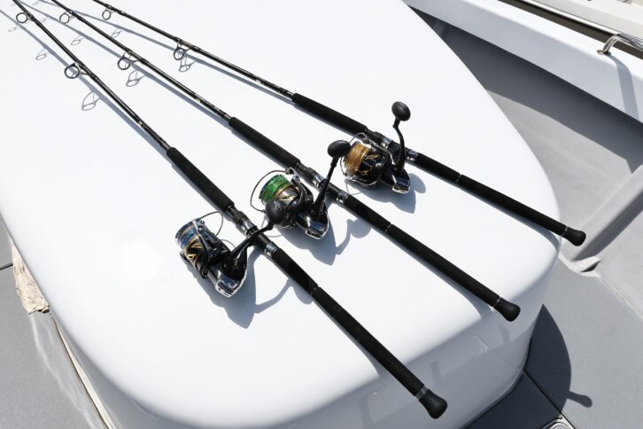 「毎回大型狙いでありますが、回遊している群れが50〜80kgもいるとなれば、それ用に1タックル用意します。このタックルはベイトが小さい状況において、小型のルアーをキャストするときにも対応します。そして大型マグロ用に2タックル用意。必ずキャスティングタックルは3タックル用意します。また予備でジギングタックルも1タックル持ち込みます」