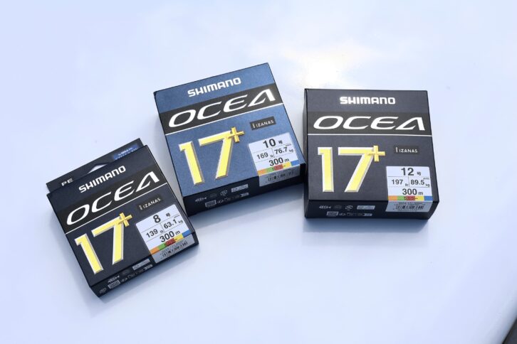 愛用ラインの、オシア 17+PE。最新の原糸素材SF700 を使用し、16本撚りの中に1本の芯を備えた構造のPEライン。驚異的な強度と耐久性を備える。芯を備えることで潰れにくく、滑らかな表面により飛距離が飛躍的に向上。さらに高い摩耗性能により、安心して長時間ファイトを行うことが可能だ。