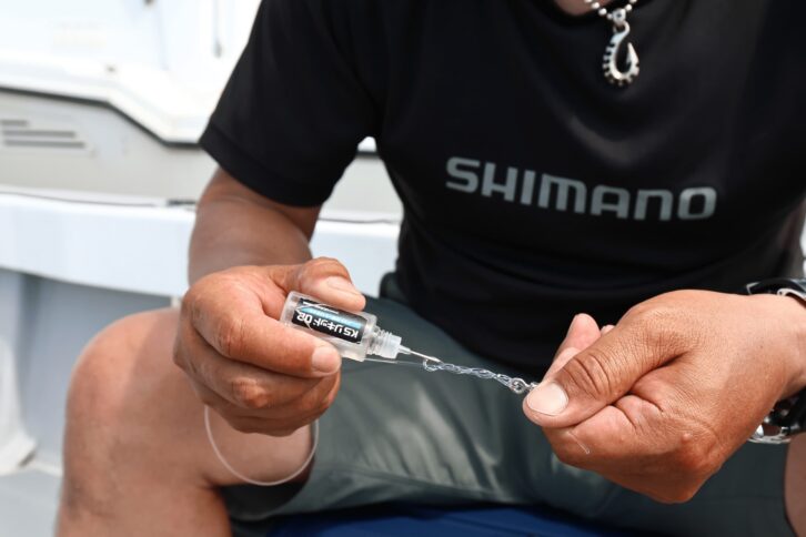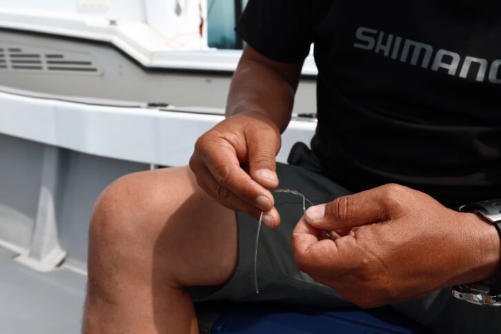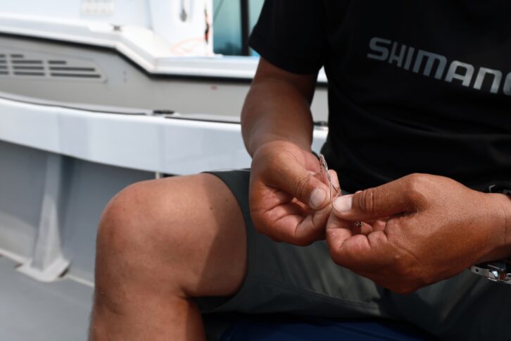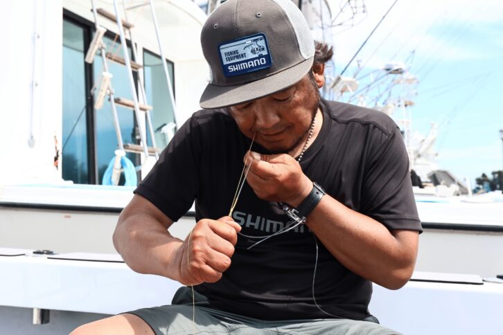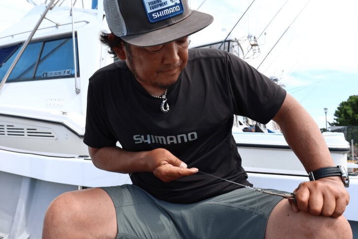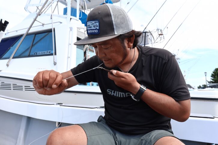 大型のクロマグロ狙いで強い引きに対応するために「特別なノットが必要なのではないだろうか」と多くのアングラーが考えるだろう。しかし鈴木さんのライン結束はかなりシンプルだ。