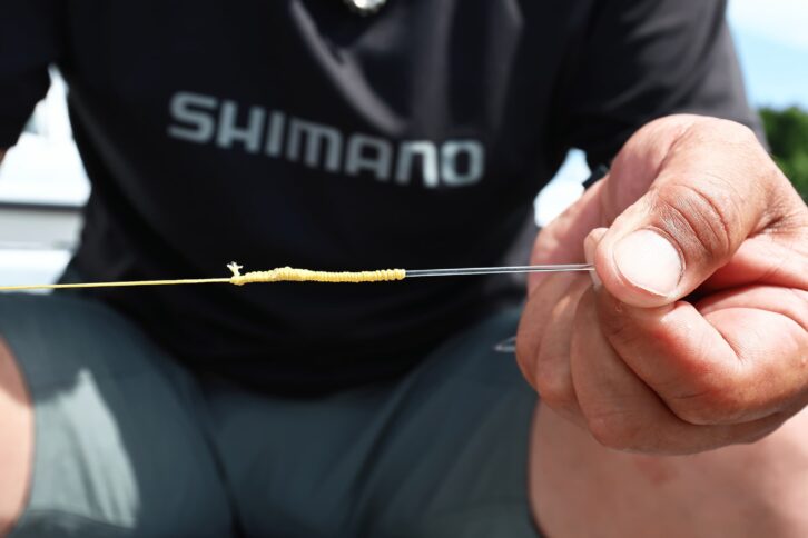 「アングラーからの質問で『スペーサーは入れないのですか?』と聞かれることがあるのですが、自分はライントラブルが起こったら、潔くラインを切って新しいリーダーで結び直したほうが良いと考えています。ラインとノットは“鮮度”が大切。スペーサーシステムは、確かに結び目の上のラインが傷まないメリットはありますが、釣り場で作るのが大変です。また “スペーサーを付けているから大丈夫”と感じて結び直さずにいると、気付かないうちにPEラインやリーダーが弱まり、ラインブレイクの原因になるのではと考えてしまいます。自分は結び直すことで、安心感を得たいタイプです」