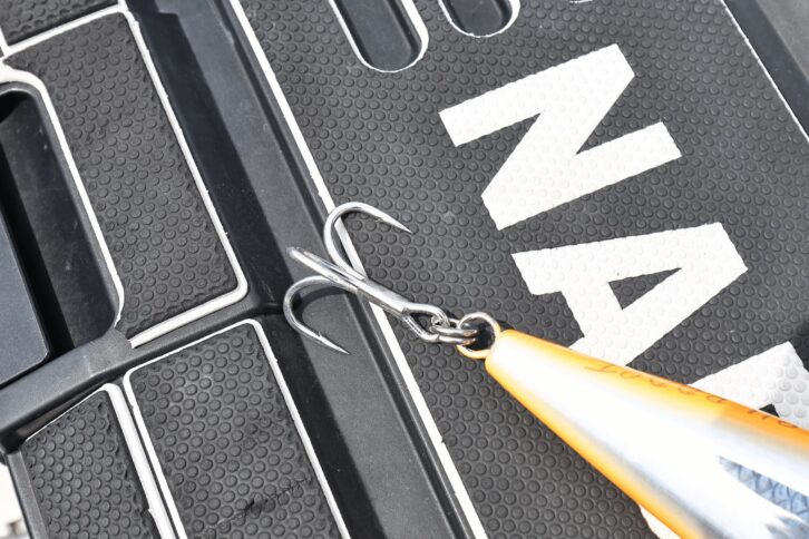 クロマグロ狙いのフックは、アングラーそれぞれにこれまでの経験を基に考えを持っている。鈴木さんは、トリプルフックをメインで使用しているが、リリースを前提にすると、フック選びは悩むという。