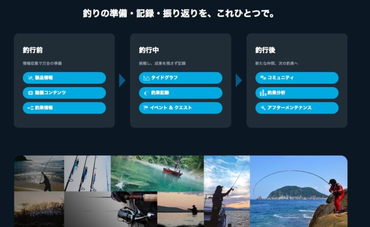 釣りの準備のための情報収集、釣りの記録、振り返りができる