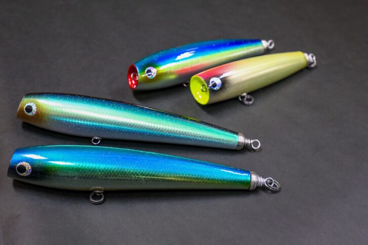 シチュエーションごとのルアーセレクトについては、「この状況ではこれを使えば良い」という明確な答えは特にないという。どれも佐藤さんがマグロ攻略のために、動きやアピールを徹底的に追求して完成させたルアーだからだ。そして現在、マグロ対応としてラインナップされているプラグは、「モグラッパー」「モグラッパースリム」「ダイナマイトドンドン」「鮪山(シビヤマ)」「コムソー」で、いずれも必要不可欠な存在だという。