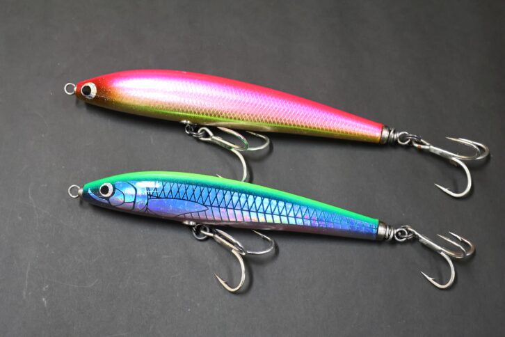 この当時、マグロ狙いを想定したプラグはもちろん存在しなかった。大型のルアーといえばGT用であり、前年にポッパーや大型ペンシルプラグ、さらにジグなどをキャストしたがヒットは得られなかった。そこで佐藤さんは、これまでにサクラマスの釣りで愛用していた重心移動搭載で飛距離が出せるタックルハウスのミノー・K-TENに着目。その140モデルは28gしかウェイトが無かったため、内部に散弾銃の弾を入れて60gにした改造を行い、それを持ち込みヒットさせることができたという。