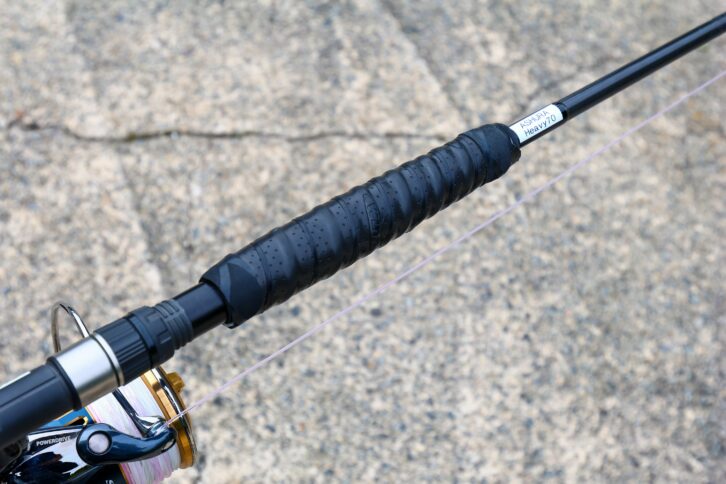 「自分では“グリップサポート”と呼んでいるのですが、グリップを力強く握らなくても、手に引っかかるためにロッドを保持できます。ファイトしていると、徐々に握力がなくなってきますが、これを付けていれば安心ですし、ファイトが格段に楽になります」