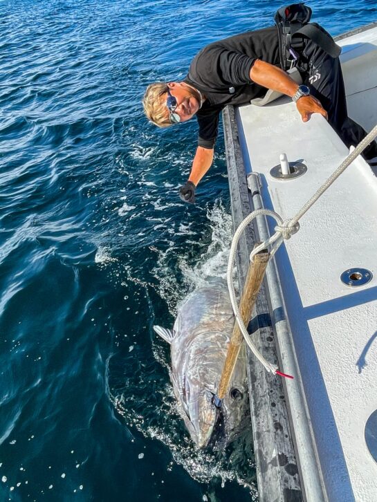 数量は月初めからスタートし、基準の捕獲数量を超えるおそれがある場合は、マグロ釣りは禁止となる。そのような背景から捕獲数量に達するのは、時期にもよるが月初めの数日となることが多い。そのため、多くの人が楽しめるように、船によってはリリースを推奨していることもある。リリースは、リリースに慣れた船長、同船アングラーと打ち合わせの上で行いたい。